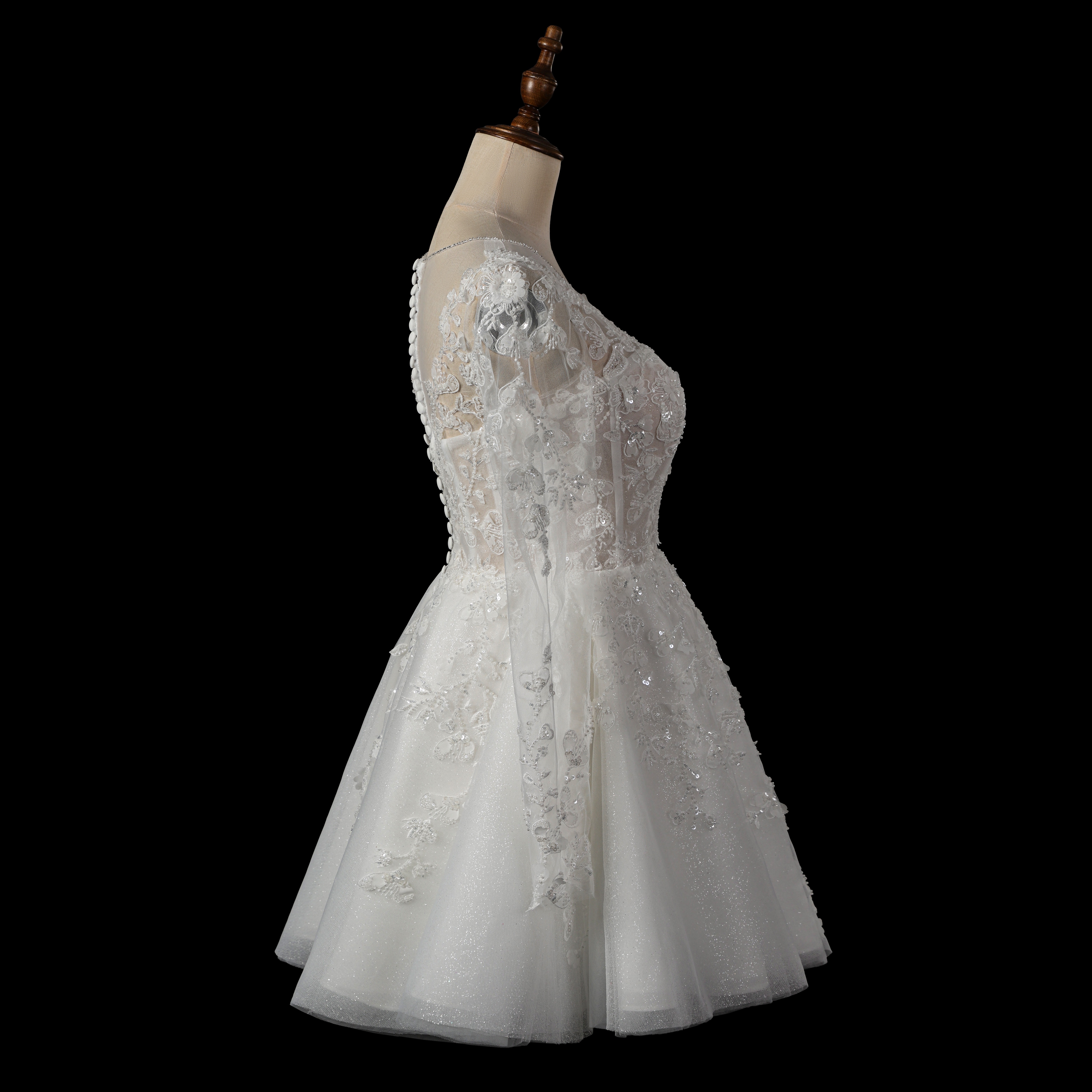 flower lace and beads with long sleeves short wedding dress