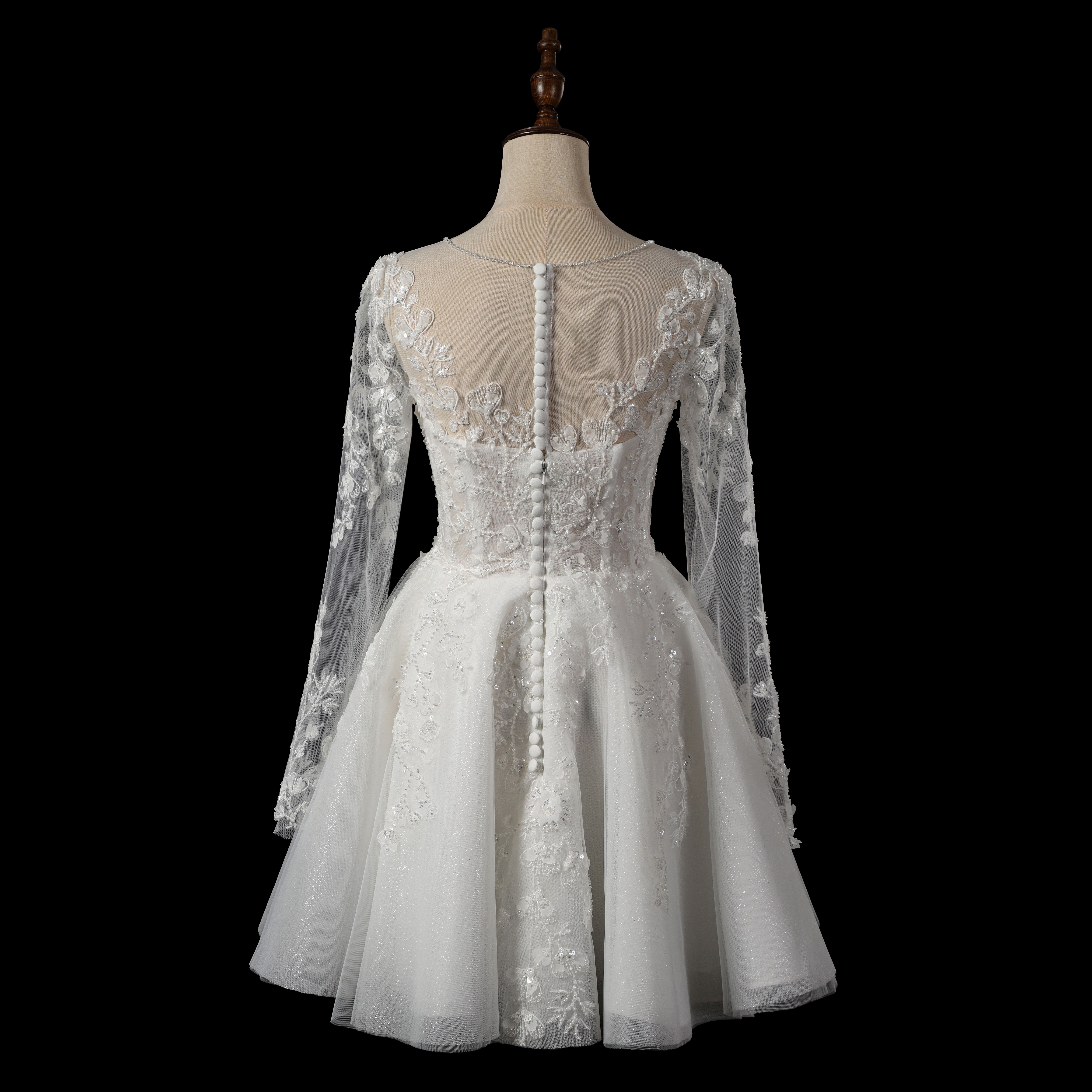- Product Name flower lace and beads with long sleeves short wedding dress